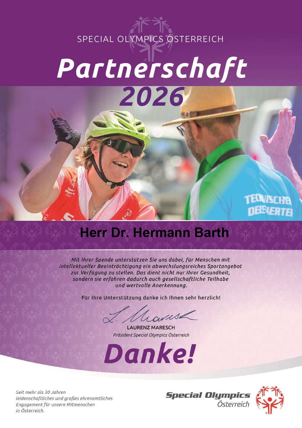 Wie Integration durch Sport gelingt, beweist weltweit Special Olymics, die offiziell vom IOC anerkannte Sportbewegung für Menschen mit mentaler Behinderung. Die Kanzlei Barth unterstützt als Sponsor Special Olympics in Österreich.